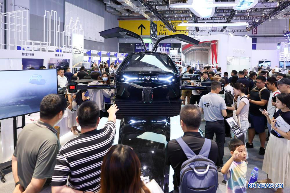 23일 박람회 현장에서 플라잉카를 살펴보고 있는 관람객들. 2025.7.23