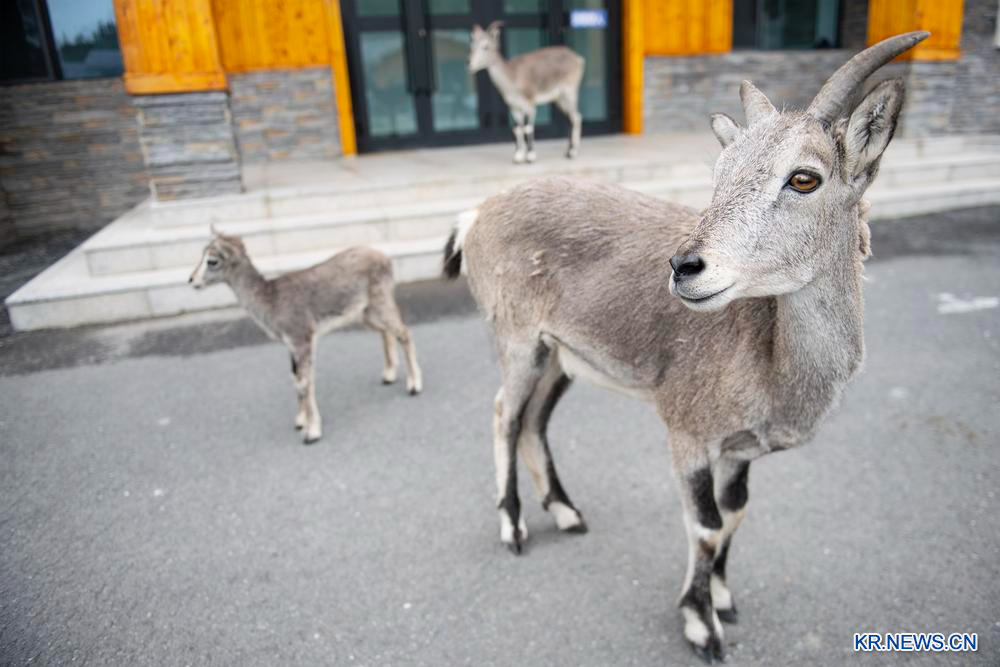 23일 치롄산 국가공원 야생동물 구호번식소에서 포착한 산양 세 마리. 2025.7.24