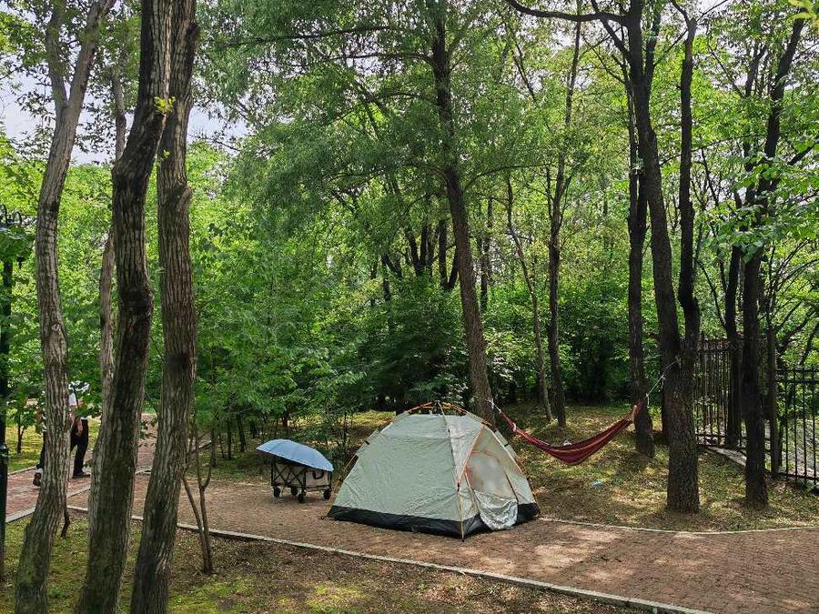 한편 하얼빈시 라오둥(勞動)공원에서는 사람들이 정자에서 휴식을 취하거나 텐트를 치며 더위를 식힌다.