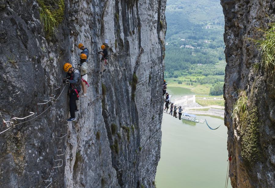 [신화망 우한 7월26일] 후베이(湖北)성 언스(恩施)투자(土家)족먀오(苗)족자치주 산악지대가 암벽 타기 등 '모험 관광'에 힘입어 인기 관광지로 부상하고 있다.