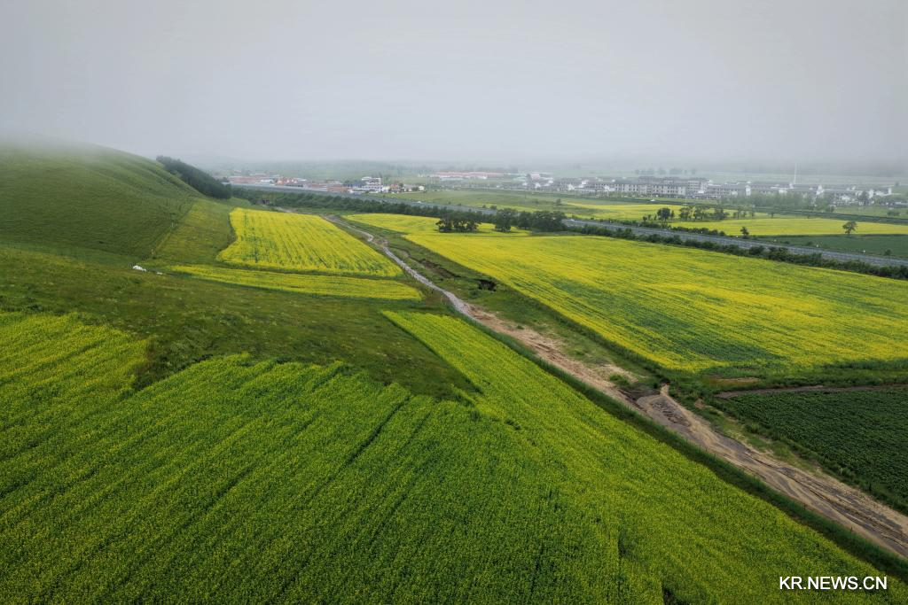 여름이 되자 허베이(河北)성 청더(承德)시 바상(壩上)초원에 녹음이 짙어지며 아름다운 경관이 펼쳐졌다.