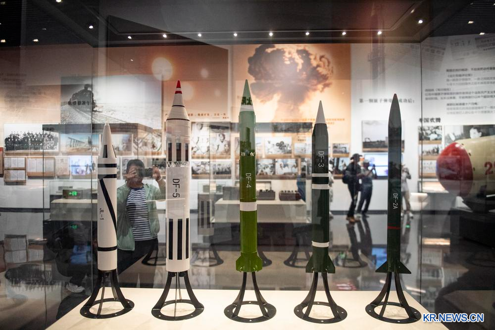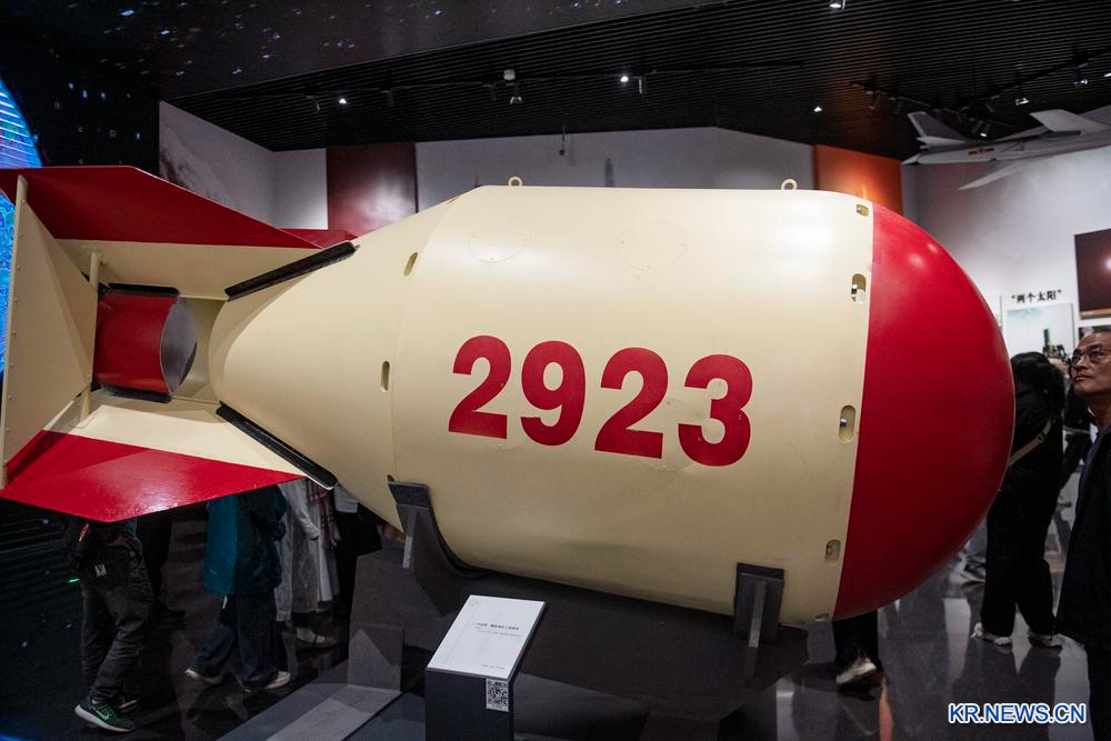 24일 칭하이(青海)성 하이베이(海北)짱(藏)족자치주 하이옌(海晏)현의 칭하이원자성기념관에서 촬영한 중국 최초 항공기 탑재형 원자폭탄 모형.