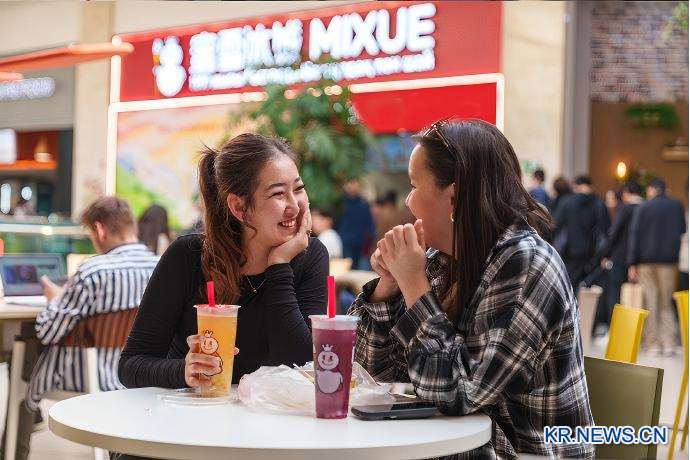 최근 허난성 정저우(鄭州)시에서 열린 '상하이협력기구(SCO) 미디어 싱크탱크 서밋' 행사장 입구에서 허난성 현지 브랜드인 미쉐빙청(蜜雪冰城)이 즉석에서 제조한 차음료를 판매해 귀빈들에게 색다른 체험을 선사했다.