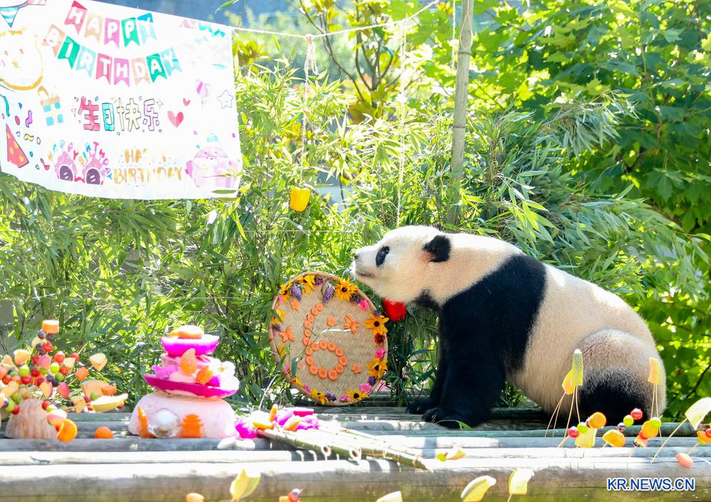 자이언트 판다 '린시'와 '이자(一家)'가 이날 쓰촨성 광안(廣安)시 화잉산판다원에서 각각 4살과 6살 생일을 맞이했다. 이에 사육사가 두 판다를 위해 특별한 생일파티를 열었다. 2025.7.27