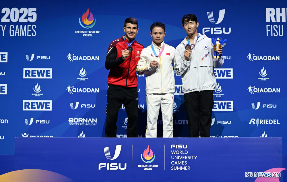 중국이 26일(현지시간) 열린 독일 라인-루르 하계 유니버시아드대회에서 체조 단일 종목에 걸린 총 10개의 금메달 중 3개를 차지했다. 중국 대표팀은 이단평행봉, 링, 남자 도마 등 세 종목에서 금메달을 획득했다.