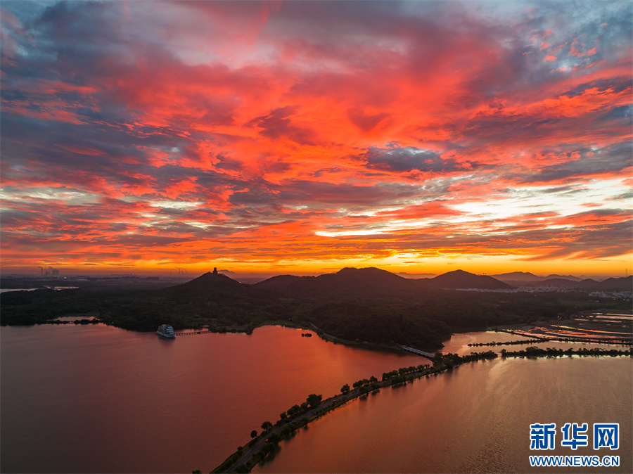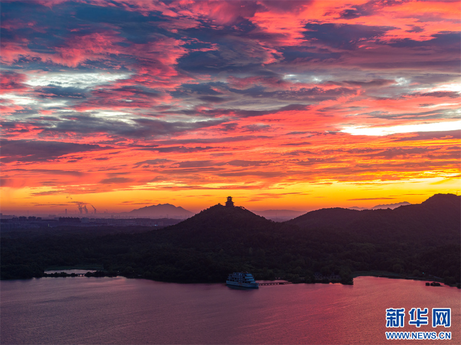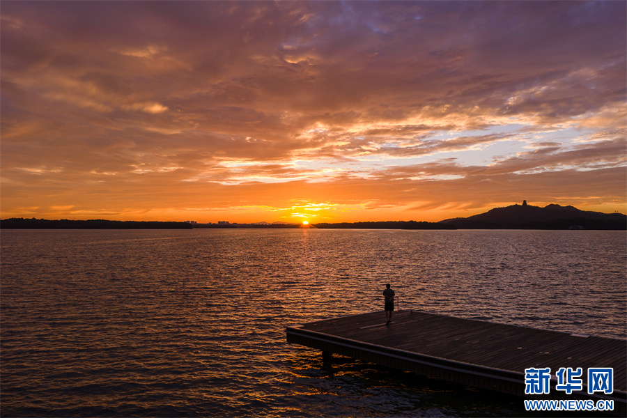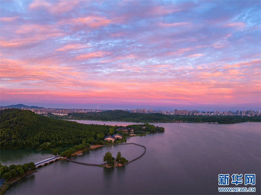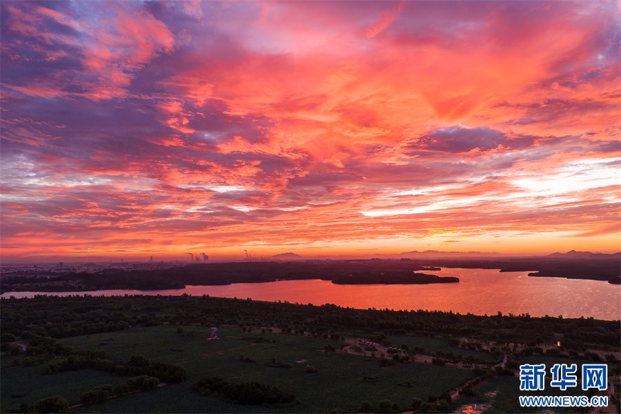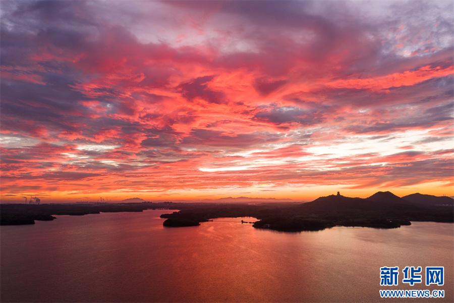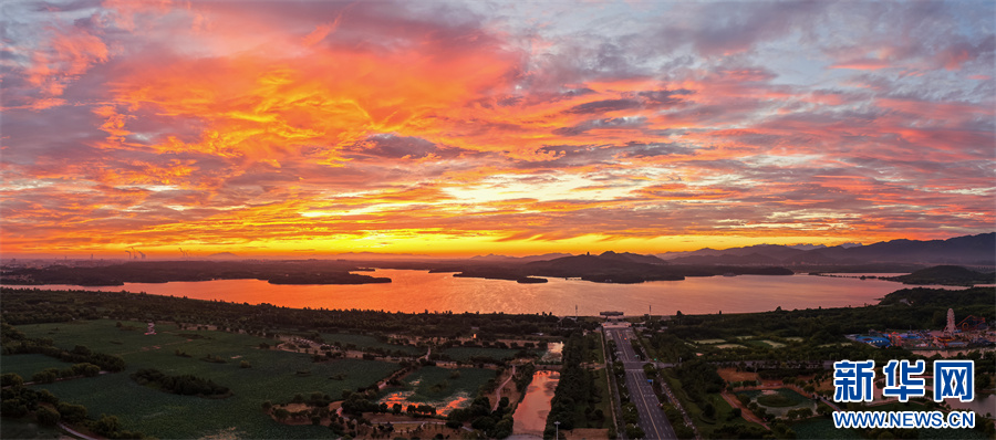 [신화망 베이징 7월30일] 최근 안후이성 츠저우(池州)시 핑톈호(平天湖) 상공에 아름다운 아침노을이 펼쳐졌다. 하늘을 곱게 물들인 노을이 거울 같은 호수에 반사되면서 하늘과 호수가 일색(一色)의 장관을 연출했다.