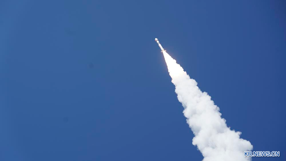 31일 중국 시창(西昌)위성발사센터에서 발사 중인 콰이저우(快舟) 1호 갑(甲) 운반로켓.
