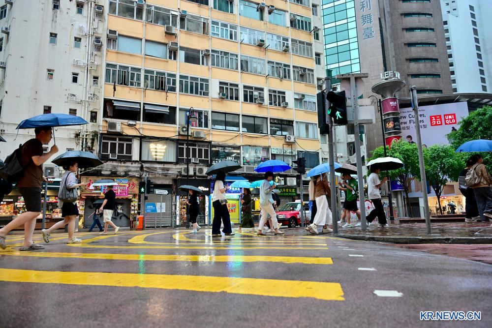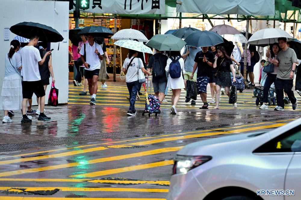[신화망 홍콩 8월3일] 2일 홍콩 기상청은 가장 높은 수준의 흑색 호우 경보를 발령했다. 이번주에만 두 번째 흑색 호우 경보다.