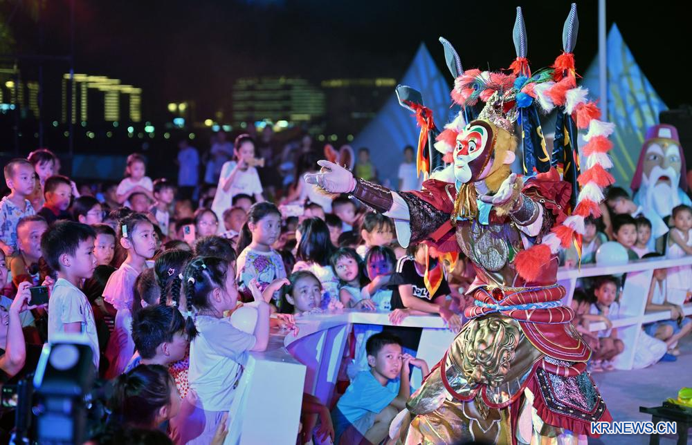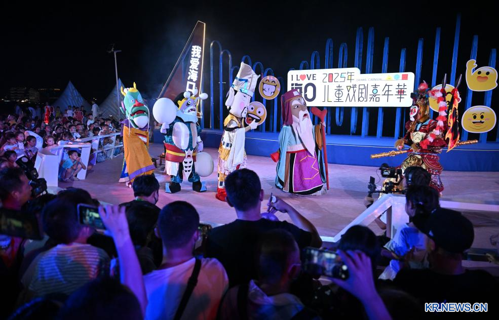 2일 '2025(제26회) 하이난(海南) 국제관광섬 카니발' 개막식 현장에서 공연 배우가 어린이 희극 공연을 펼치며 관객과 소통하고 있다.