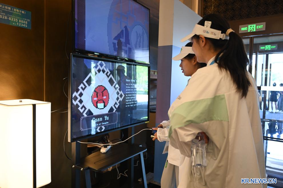 (중국 청두=신화통신) 3일 청두(成都) 월드게임 선수촌의 인터랙티브 체험 구역.