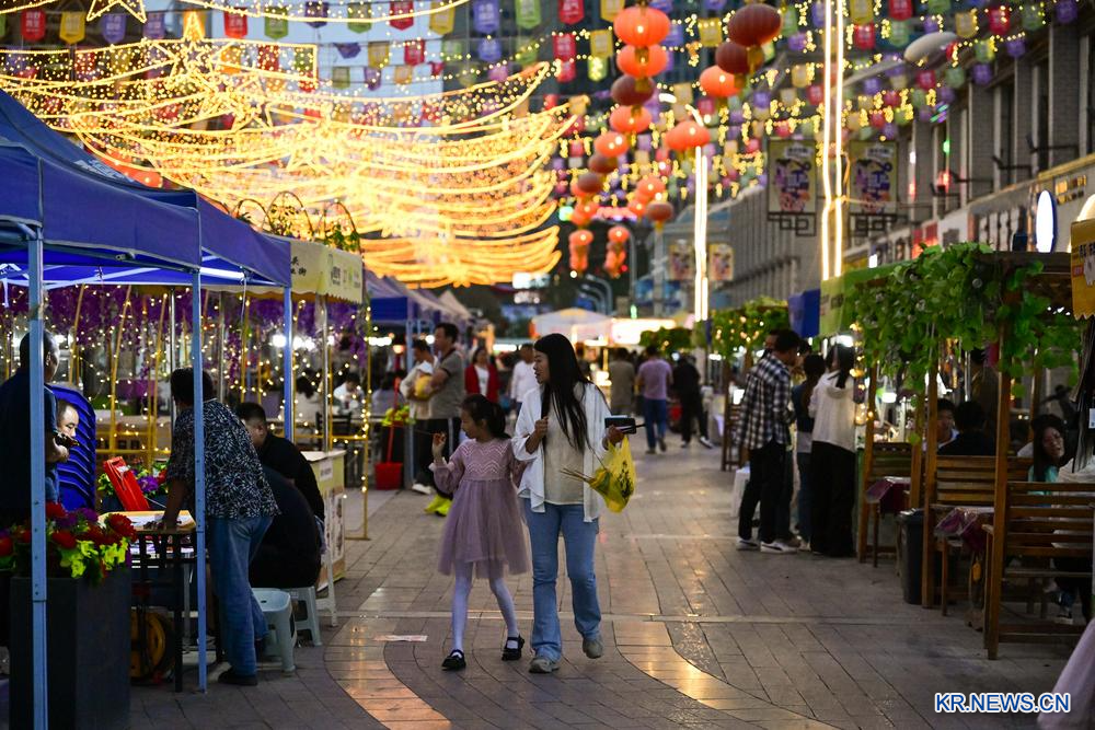 지난달 2일 칭하이(青海)성 거얼무(格爾木)시의 한마터우(旱碼頭) 야시장을 찾은 시민들.