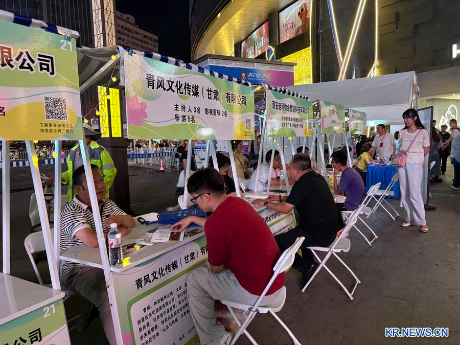 [신화망 란저우 8월6일] 주말 저녁이 되면 간쑤(甘肅)성 란저우(蘭州)시 중산차오(中山橋)에서 멀지 않은 장예루(張掖路) 보행자거리에 음악 소리와 함께 '채용 프리마켓'이 열린다. 즐비하게 늘어선 채용 부스에선 구직자와 채용 담당자가 일자리 정보를 나누고 고용 계약을 체결한다.