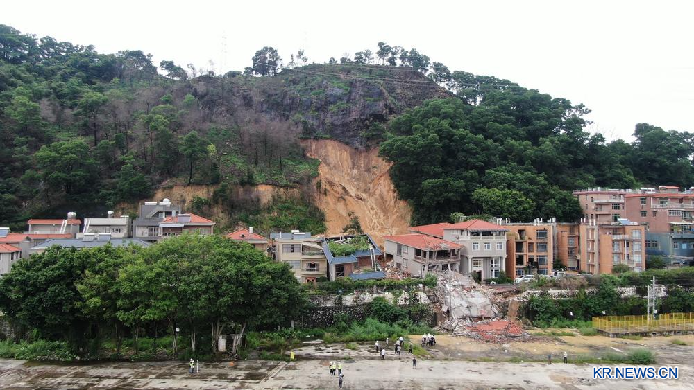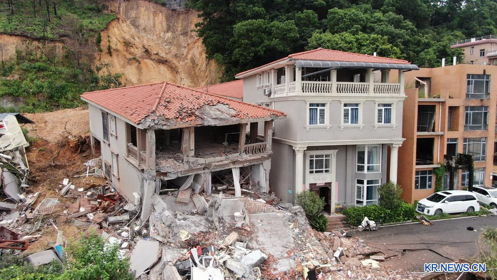 6일 산사태로 무너진 광저우(廣州)시 바이윈(白雲)구 다위안(大源)촌 황좡(黃莊)지역 가옥.