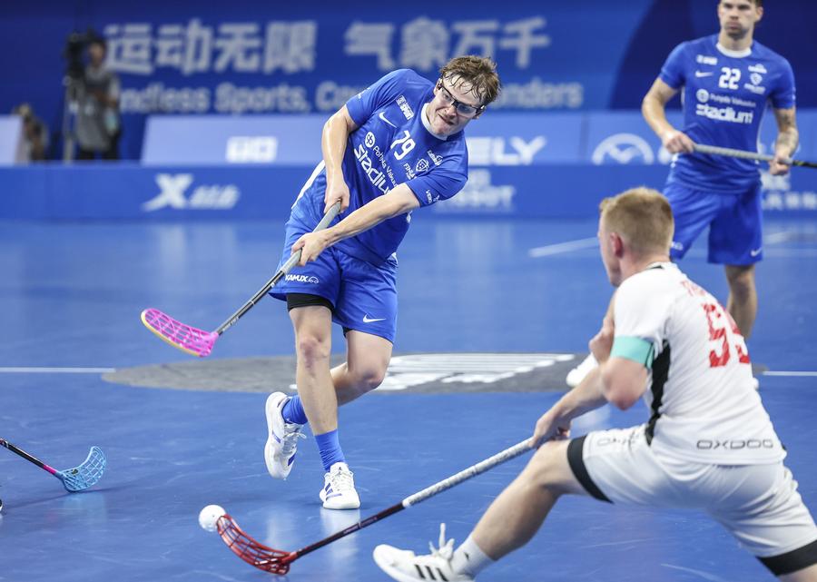 8일 오리엔티어링 남자 중거리 결승전에서 스위스의 리카르도 란칸 선수가 '제12회 월드게임'의 첫 번째 금메달을 목에 걸었다. (사진/신화통신)8일 청두(成都)하이테크스포츠센터에서 열린 우슈 여자 태극권 결승전에서 말레이시아의 시드니 친 선수가 경기를 펼치고 있다. (사진/신화통신)8일 '제12회 월드게임' 플로어볼 남자B조 예선에서 핀란드 팀의 유소 아홀라 선수(왼쪽)가 골을 넣고 있다. 이날 핀란드 팀은 캐나다팀을 24대 1로 꺾었다. (사진/신화통신)8일 젠양(簡陽)문화체육센터에서 진행된 가라테 여자 B조 조별 경기에서 중국의 타오이웨이(陶禕瑋) 선수와 중국 홍콩의 라우 모 슝 선수가 대결을 펼쳤다. (사진/신화통신)8일 싼차후(三岔湖) 타오화다오(桃花島)경기장에서 열린 웨이크보드 여자 예선전에 참가한 중국의 쉬루(徐露) 선수. (사진/신화통신)8일 호주 팀의 밈 수아레스-주리(가운데) 선수가 맹공을 펼치고 있다. 이날 라크로스 여자 예선 B조 경기에서 미국 팀이 호주 팀을 25대 13으로 이겼다. (사진/신화통신) 원문 출처:신화통신 한국어 뉴스 서비스