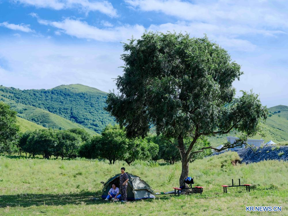 9일 우란마오두 초원 나무 아래 텐트를 치고 호젓한 순간을 즐기는 관광객. 2025.8.9
