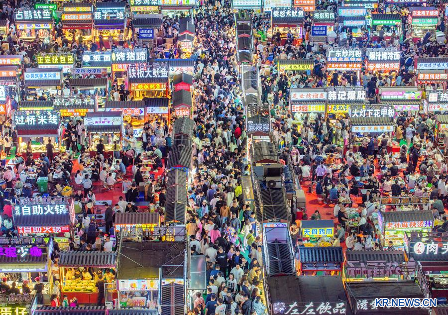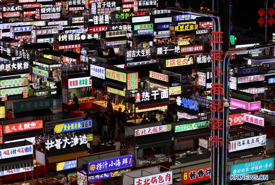 [신화망 스자좡 8월11일] 어둠이 내려앉은 허베이(河北)성 정딩(正定)현의 한 주차장. 낮에 주차했던 차량들이 차례로 떠나고 수백 대의 푸드트럭이 들어서자 순식간에 네온이 반짝이고 사람들로 북적이는 '미식 천국'으로 변신한다. 형형색색의 간판이 질서정연하게 배열된 모습은 강렬한 인상을 남긴다.