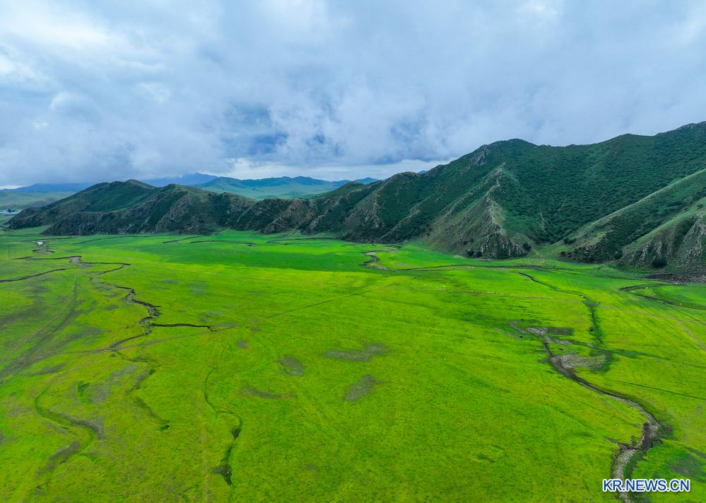 11일 네이멍구(內蒙古)자치구 퉁랴오(通遼)시 자루터(扎魯特) 산지 초원을 드론으로 담았다.