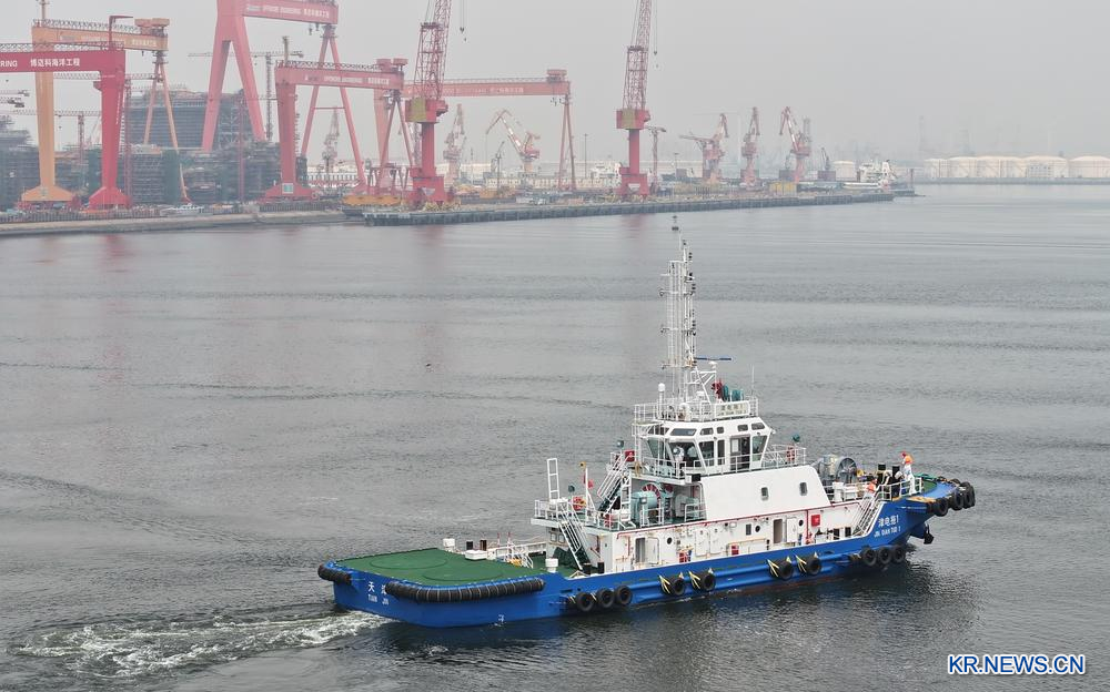 이날 순수 전동 항만 예인선 4척이 중국선박그룹 톈진부두에서 출항했다. 톈진항 수역에서 각종 선박의 입출항, 정박 작업을 지원할 해당 예인선은 배기가스 무배출, 저소음으로 운항될 뿐만 아니라 5천400마력의 엔진, 스마트 제어 시스템을 갖춰 기존 디젤 예인선 대비 작업 효율이 크게 향상된 것으로 전해졌다. 2025.8.13