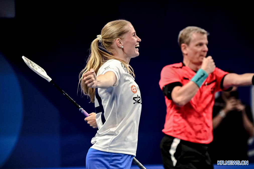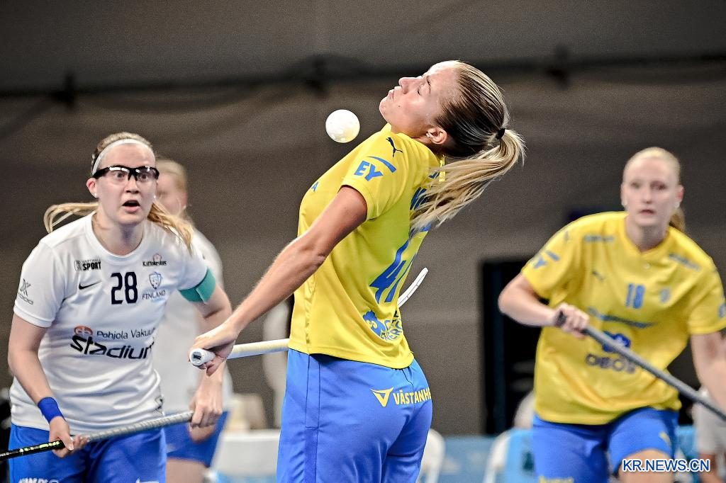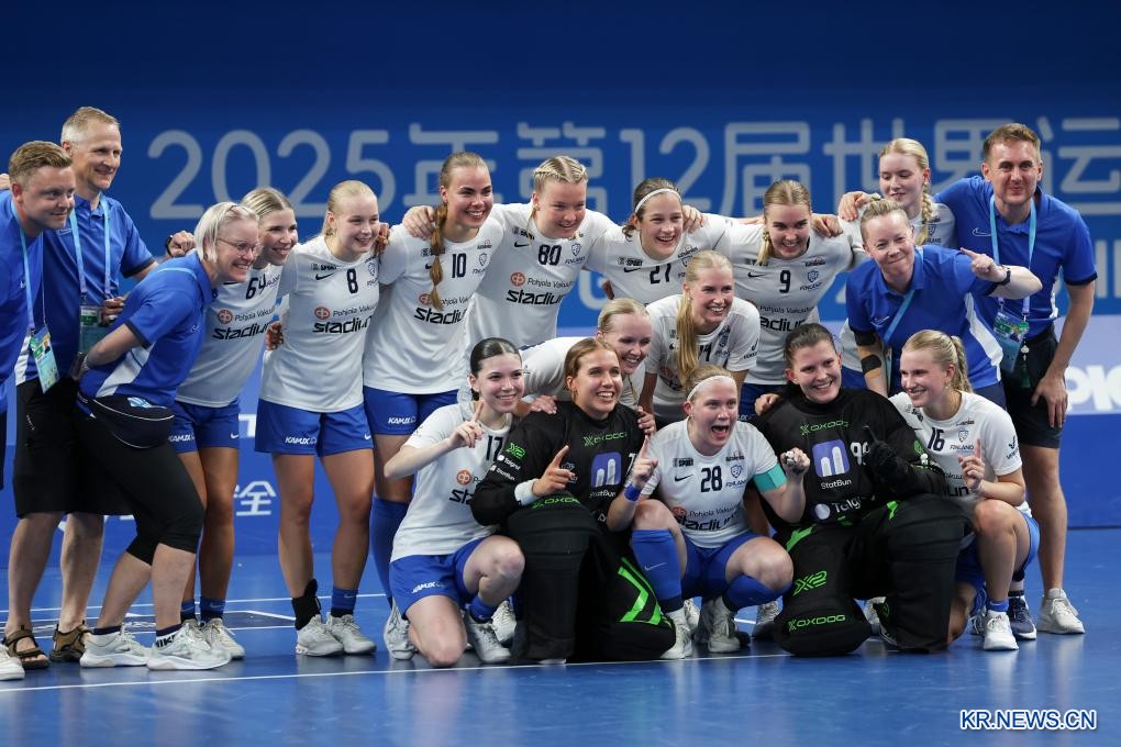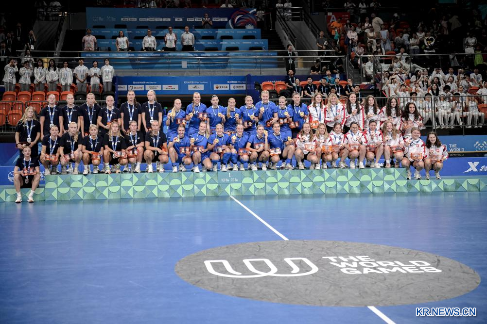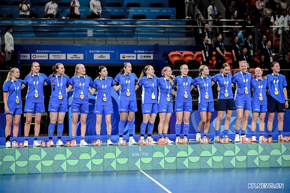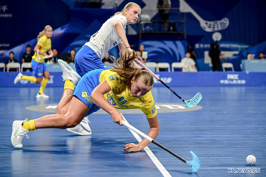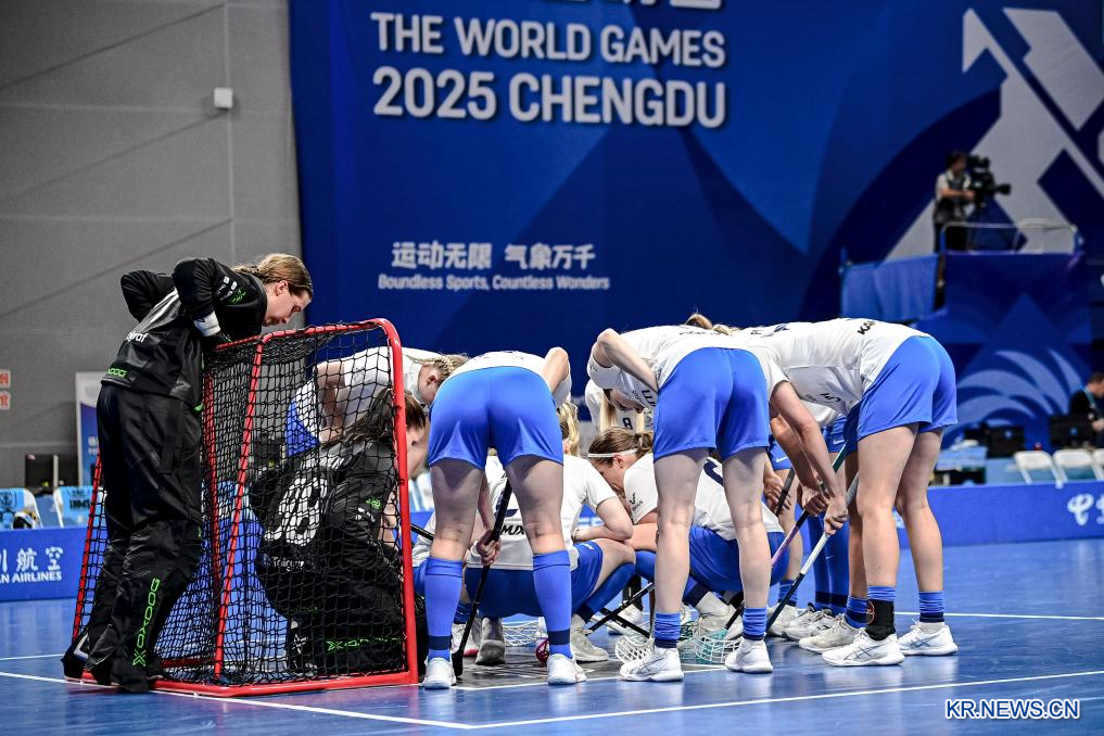 13일 쓰촨(四川)성 청두(成都)시에서 열린 '제12회 월드게임' 플로어볼 여자부 결승전에서 핀란드가 스페인을 누르고 금메달을 목에 걸었다.
