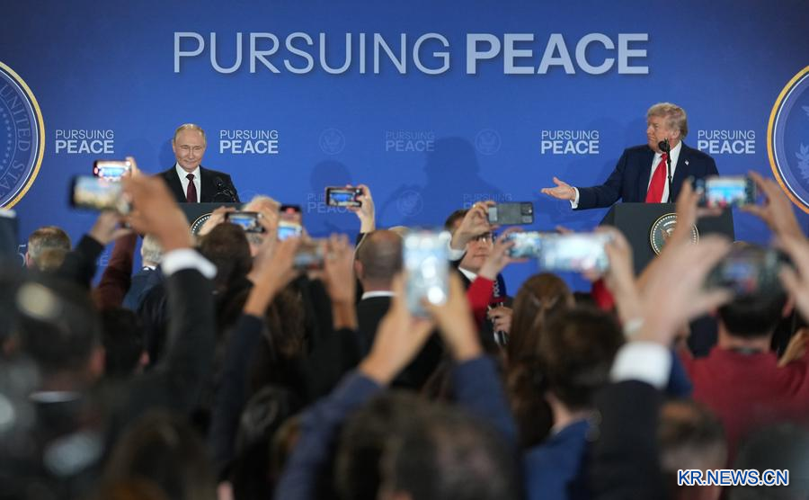 [신화망 앵커리지 8월16일] 도널드 트럼프 미국 대통령과 블라디미르 푸틴 러시아 대통령이 15일(현지시간) 미국 알래스카주 앵커리지시 엘먼도프 리처드슨 합동기지에서 회담을 가졌다.
