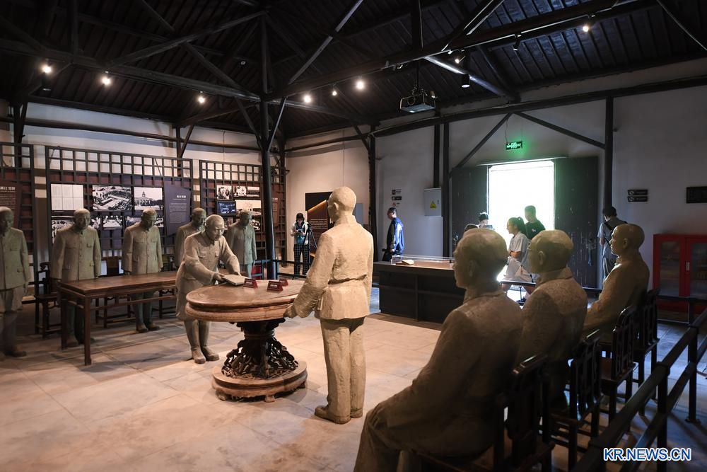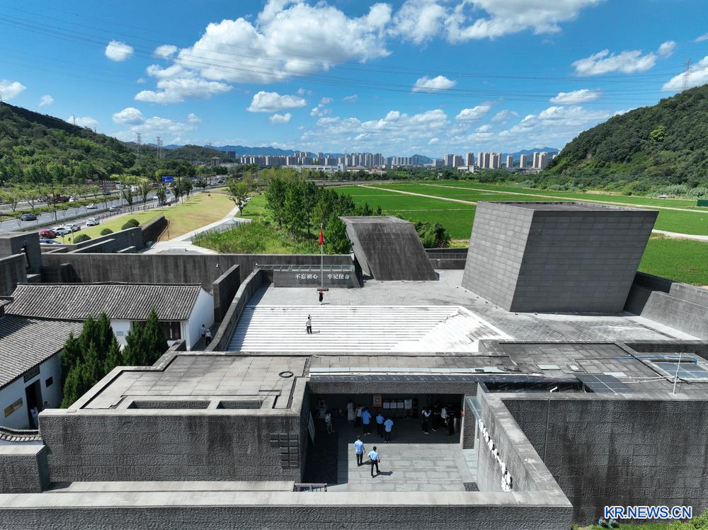 15일 저장(浙江)성 항저우(杭州)시 푸양(富陽)구에 위치한 항일전쟁 승리 수항(受降)기념관을 둘러보는 사람들.