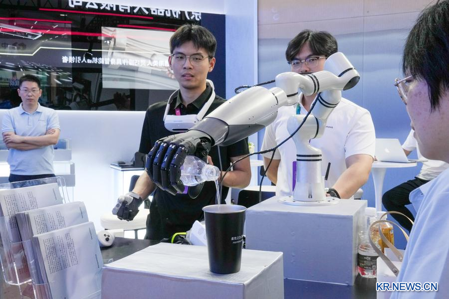 [신화망 베이징 8월17일] 로봇 레스토랑의 문을 열고 들어서자 휴머노이드 웨이터가 마치 실제 사람처럼 고개를 끄덕이며 손님에게 말을 걸어온다. 서빙 로봇은 테이블 사이를 미끄러지듯 이동하며 음식을 전달하고, 로봇 밴드는 드럼과 기타를 연주하며 식사 분위기를 돋운다.