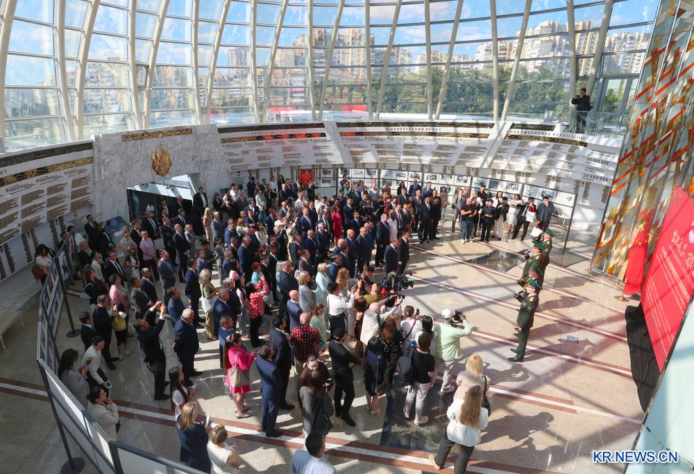 이날 벨라루스 수도 민스크에서 촬영한 '중국 인민 항일전쟁 및 세계 반파시스트 전쟁 승리 80주년 기념 사진전' 개막식 현장. 2025.8.16
