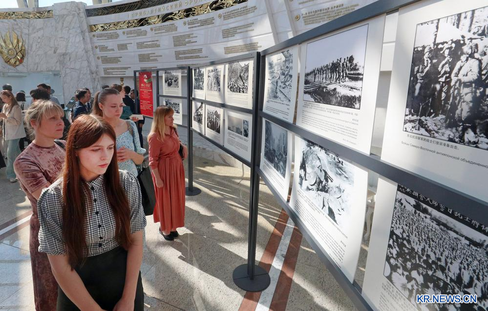 [신화망 민스크 8월17일] '역사를 기억하고 미래를 창조하자: 중국 인민 항일전쟁 및 세계 반파시스트 전쟁 승리 80주년 기념 사진전'이 15일 벨라루스의 위대한 애국전쟁박물관 승리홀에서 개막했다. 벨라루스 정부 및 사회 각계 대표 250여 명이 현장을 찾아 사진전을 관람했다.