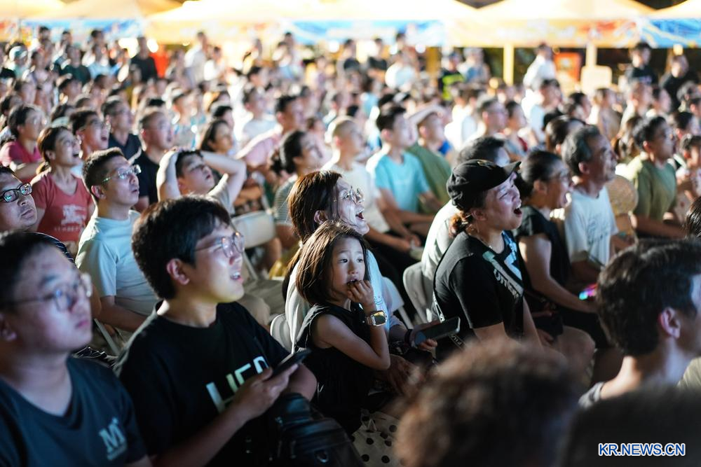 이날 장쑤(江蘇) 난징(南京)서 열린 '2025 장쑤성 도시 축구리그' 9라운드 경기에서 난징팀이 옌청(鹽城)팀과 맞붙었다. 난징시는 일부 쇼핑몰, 거리 등에 경기 관람 공간을 조성하고 대형 스크린을 통해 경기를 동시 생중계했다. 2025.8.17