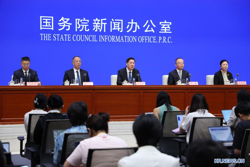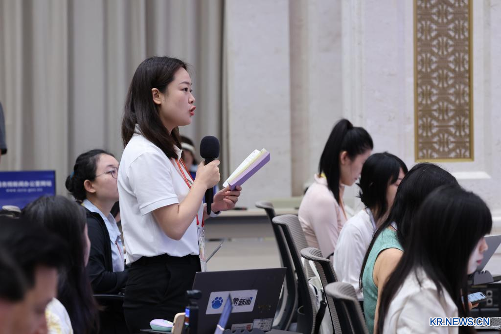 [신화망 베이징 8월19일] 19일 중국 국무원 신문판공실은 베이징에서‘제14차 5개년 계획의 고품질 완성’ 시리즈 주제 언론 브리핑을 개최했다. 가오즈단(高志丹) 국가체육총국 국장, 딩둥(丁東) 국가체육총국 군중체육사(司) 사장, 장신(張新) 국가체육총국 경기체육사 사장, 양쉐둥(楊雪鶇) 국가체육총국 체육경제사 사장이 '제14차 5개년 계획' 기간 체육 강국 건설 성과를 소개하고 기자들의 질문에 답변했다.[촬영/신화사 기자 진리왕(金立旺)]