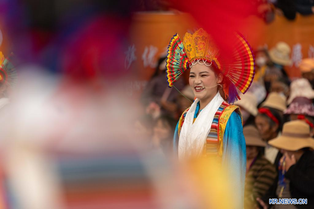 24일 라싸 쭝자오루캉공원에서 포착한 시짱 전통극 공연 현장.