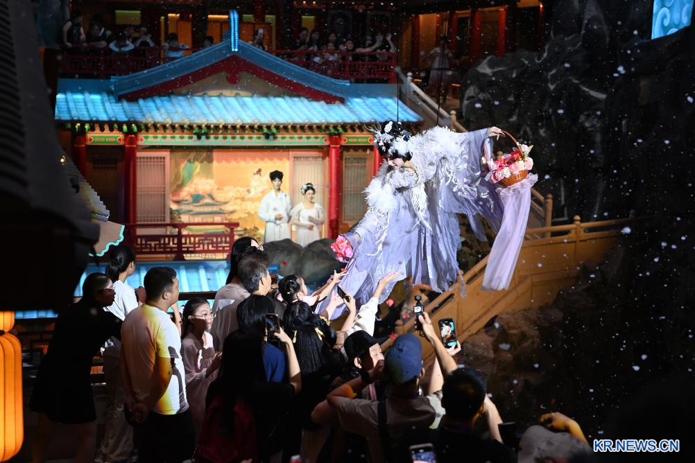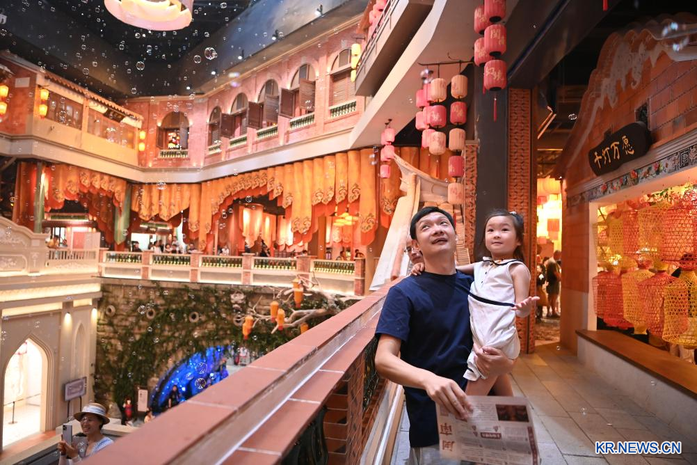 지난 22일 관광객들이 푸젠(福建)성 샤먼(廈門)시 둥두(東渡) 크루즈 모항구역에 위치한 민난(閩南) 문화테마 관광지에서 여가를 즐기고 있다.