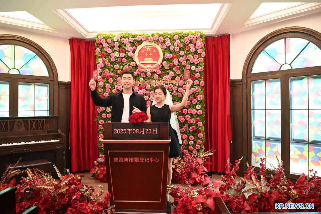 23일 관광객들이 샤먼시에 위치한 구랑위(鼓浪嶼)바과러우(八卦樓) 입구에서 사진을 찍고 있다. 2025.8.24