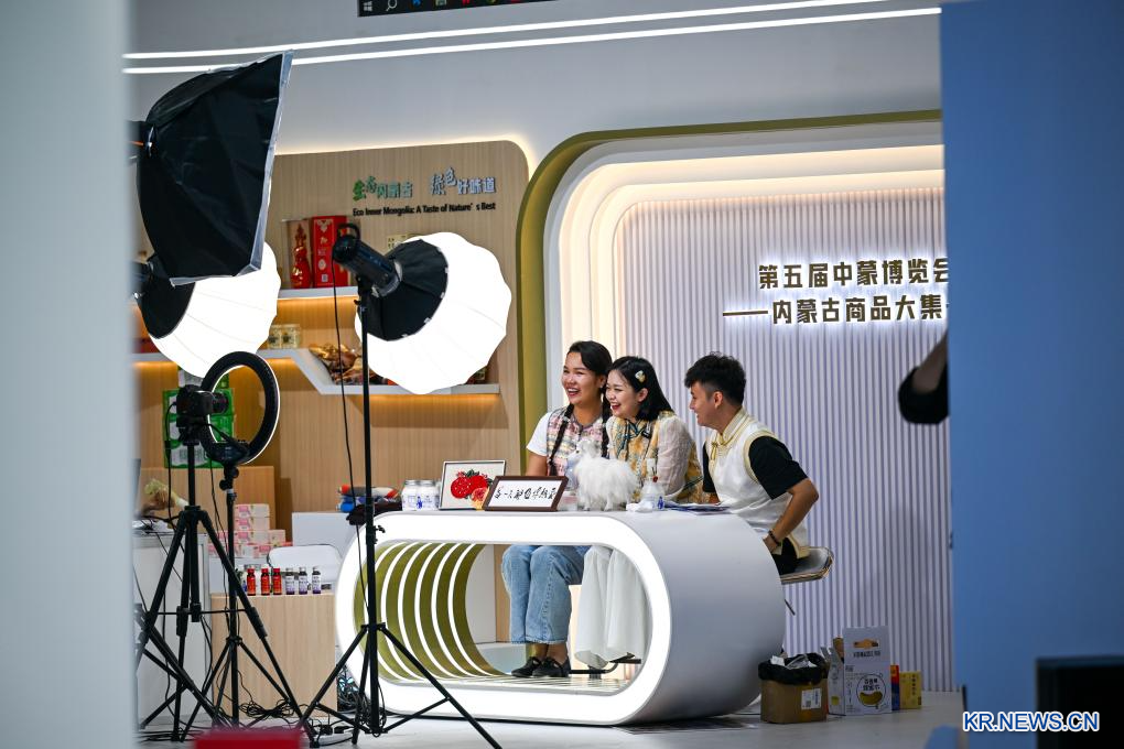 25일 '제5회 중국-몽골 박람회'에서 라이브커머스 방송을 진행하고 있는 참가자.