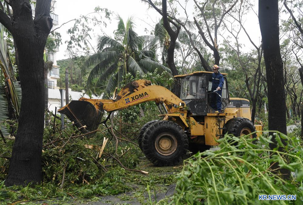 [신화망 싼야 8월26일] 태풍 '가지키' 대응을 위해 하이난(海南)성 싼야(三亞)시는 구조대를 조직해 장애물 제거, 물·전력 공급, 구조 등 복구 작업에 나섰다.