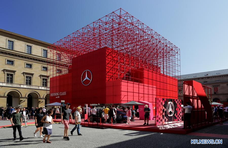'IAA 모빌리티 2023'(뮌헨 모터쇼)에 마련된 메르세데스 벤츠 전시구역을 구경하는 관람객들.