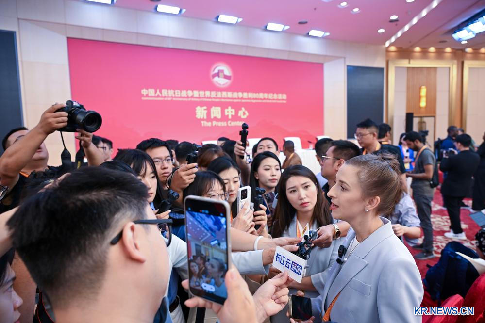 '중국인민항일전쟁 및 세계반파시스트전쟁 승리 80주년' 기념행사 프레스센터가 27일 본격 가동됐다. 베이징 미디어센터호텔에 자리한 프레스센터는 기념행사를 취재하러 온 국내외 기자들에게 취재증을 발급하고 기념행사 관련 취재 일정을 조율하는 한편 전송 통신 수단, 자료 서비스 및 뉴스 취재와 관련한 상담을 제공한다. 2025.8.28
