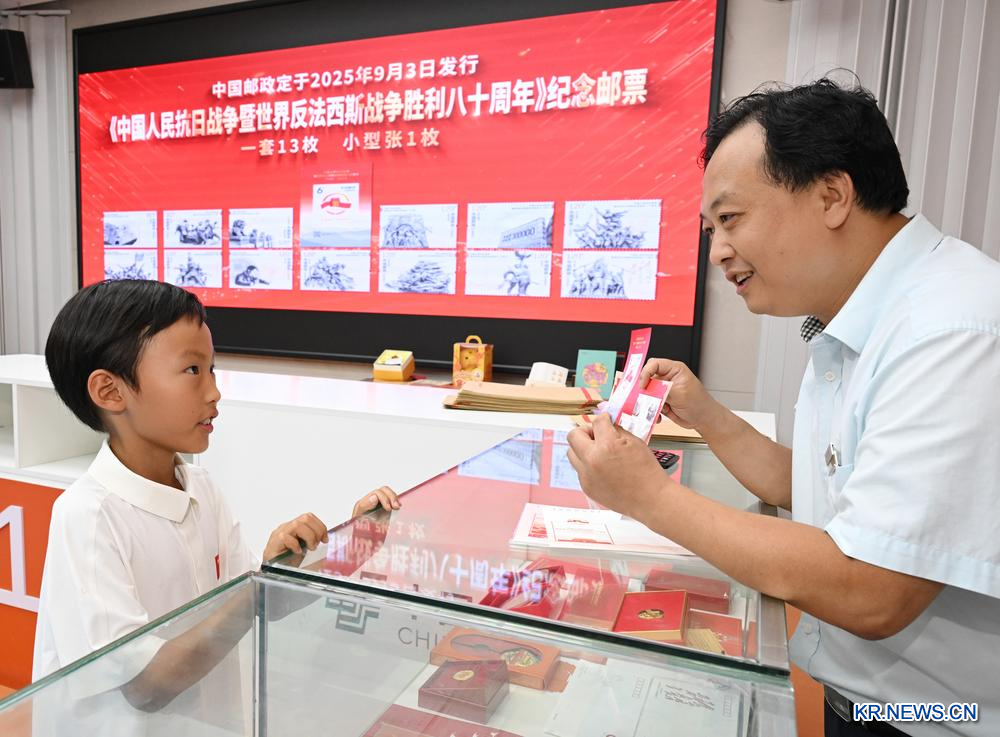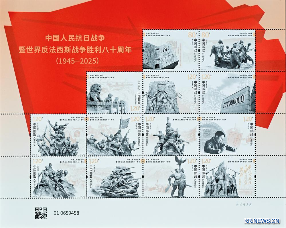 이날 발행된 '중국인민항일전쟁 및 세계반파시스트전쟁 승리 80주년' 기념우표. 2025.9.3