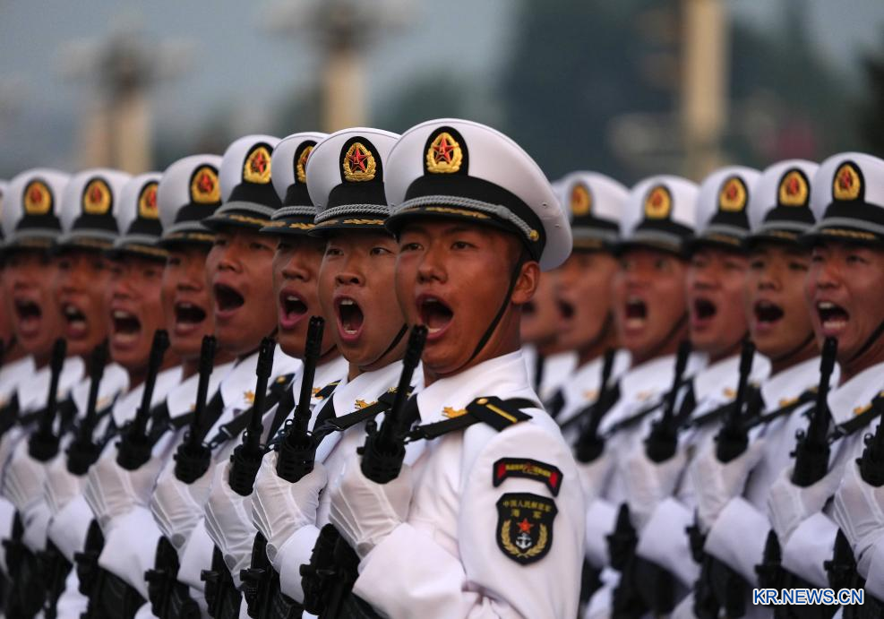 [신화망 베이징 9월3일] '중국인민항일전쟁 및 세계반파시스트전쟁 승리 80주년' 기념대회가 3일 베이징에서 성황리에 열린다. 사진은 기념대회 시작 전에 사열 받는 부대가 준비하고 있는 모습. pagebreak