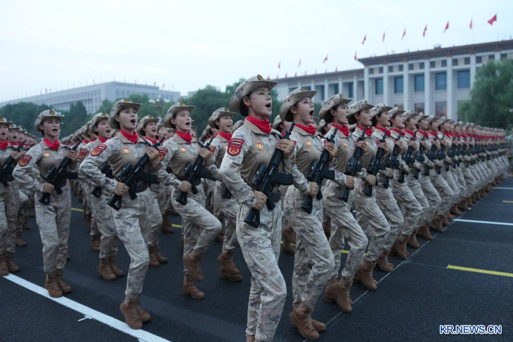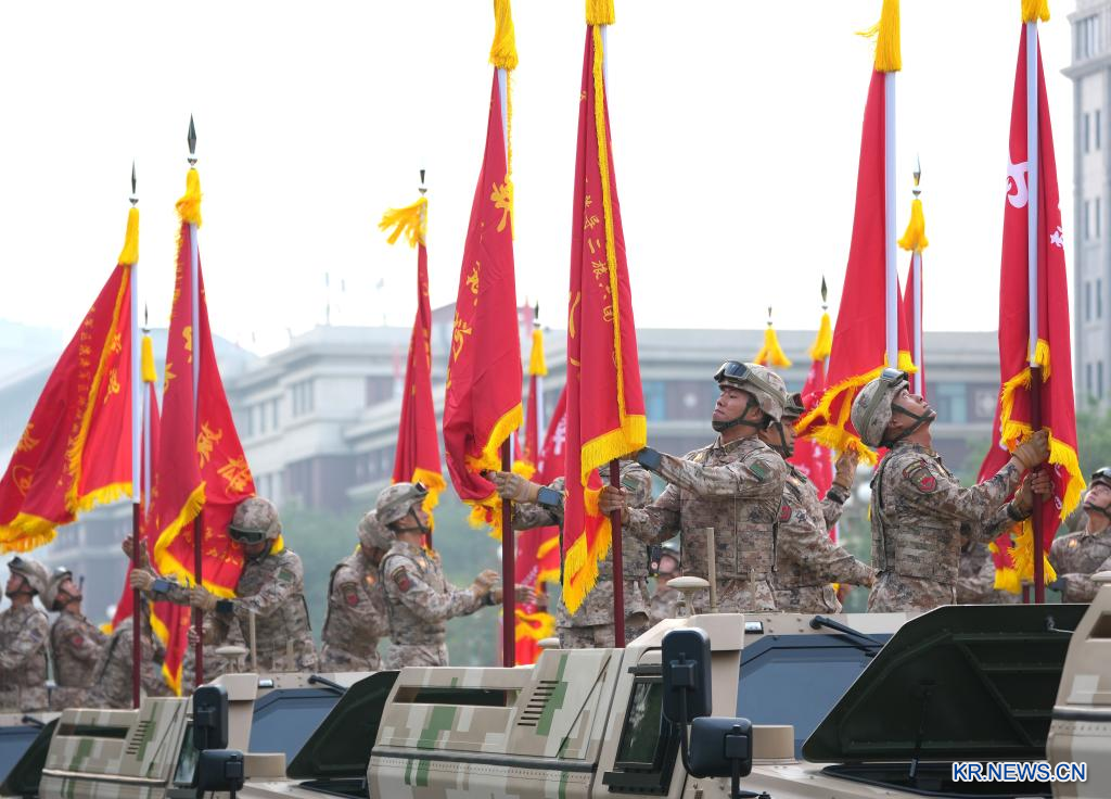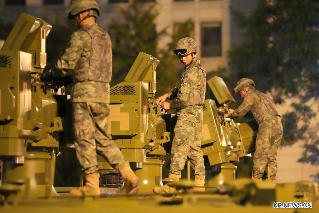 '중국인민항일전쟁 및 세계반파시스트전쟁 승리 80주년' 기념대회가 3일 베이징에서 성황리에 열린다. 사진은 기념대회 시작 전에 사열 받는 부대가 준비하고 있는 모습.pagebreak