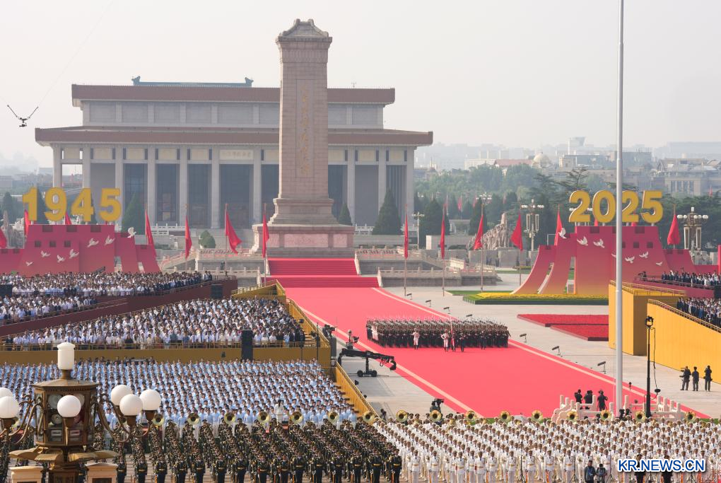 중국인민항일전쟁 및 세계반파시스트전쟁 승리 80주년 기념대회가 3일 베이징 톈안먼(天安門) 광장에서 개최됐다.[촬영/신화사 기자 무위(牟宇)]pagebreak