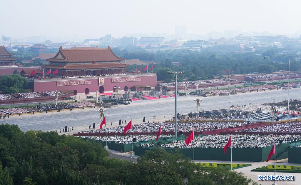 중국인민항일전쟁 및 세계반파시스트전쟁 승리 80주년 기념대회가 3일 베이징 톈안먼(天安門) 광장에서 개최됐다.[촬영/신화사 기자 저우디샤오(周荻瀟)]pagebreak