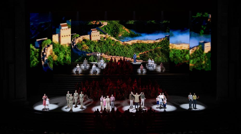 [신화망 베이징 9월4일] '중국인민항일전쟁 및 세계반파시스트전쟁 승리 80주년' 기념 문예공연 '정의필승(正義必勝)'이 3일 저녁 베이징 인민대회당에서 성대한 막을 올렸다. 2025.9.3