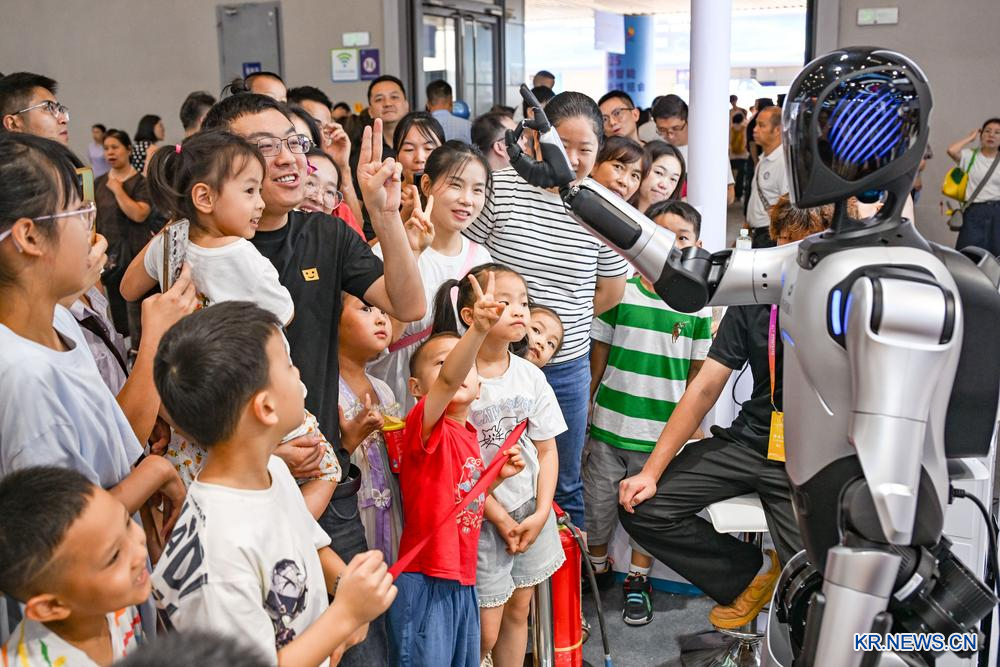 7일 박람회에서 휴머노이드 로봇과 상호작용하는 관람객. 2025.9.7
