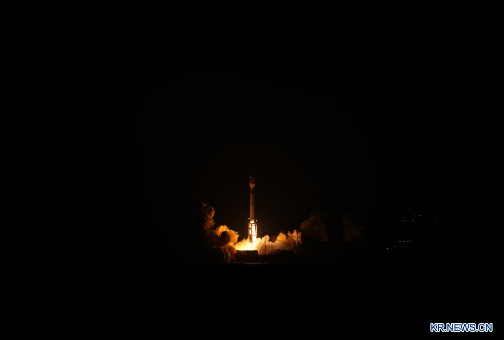 9일 지리(吉利) 콘스텔레이션(성좌) 05조 위성을 실은 제룽(捷龍) 3호 운반로켓이 하늘로 쏘아 올려지고 있다.
