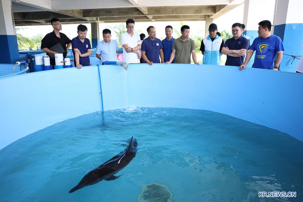 지난 6월 하이난성 완닝(萬寧)에서 구조된 좌초 돌고래 완완은 전문 구조팀으로부터 구조된 후 약 3개월간의 세심한 보살핌을 받았다. 현재 완완의 상태는 양호한 것으로 알려졌다. 전문팀은 종합 평가를 통해 완완이 이미 자연 방류 조건을 갖췄다고 판단해 적절한 시일에 바다로 돌려보낼 계획이다. 2025.9.8