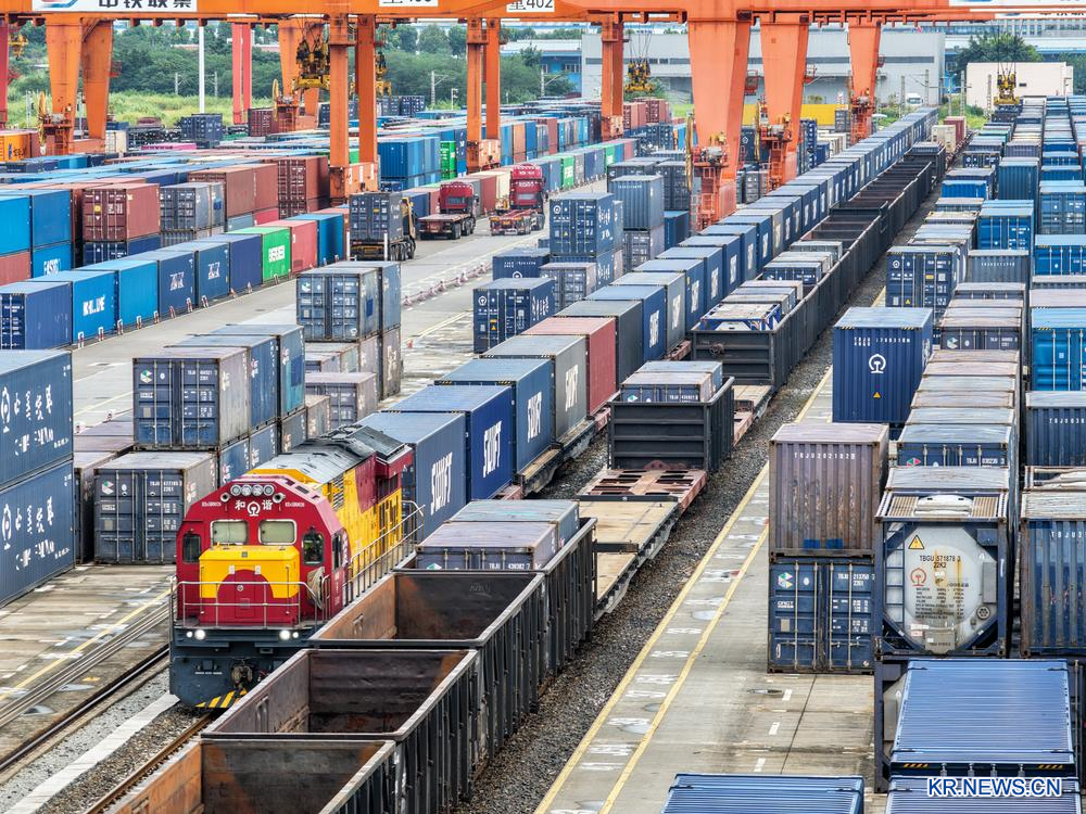 [신화망 충칭 9월9일] 충칭(重慶)에서 생산된 제품을 가득 실은 중국-유럽 화물열차(청위·청두와 충칭의 약칭)가 8일 충칭 퇀제춘(團結村)중심역에서 출발했다. 충칭철로물류센터 통계에 따르면 올 1~7월 중국-유럽 화물열차(청위)의 운행량은 3천400편 이상으로 28만TEU가 넘는 수출입 화물을 운반했다.