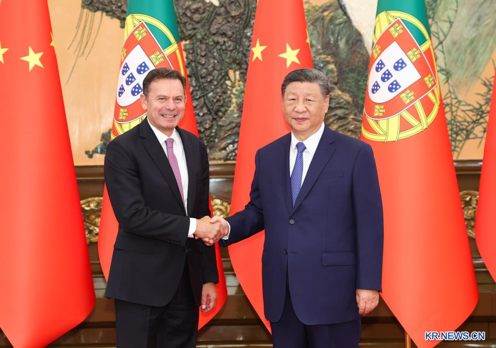 [신화망 베이징 9월9일] 시진핑(習近平) 중국 국가주석이 9일 오전 베이징 인민대회당에서 루이스 몬테네그루 포르투갈 총리와 회견했다. [촬영/신화사 기자 황징원(黄敬文)]pagebreak