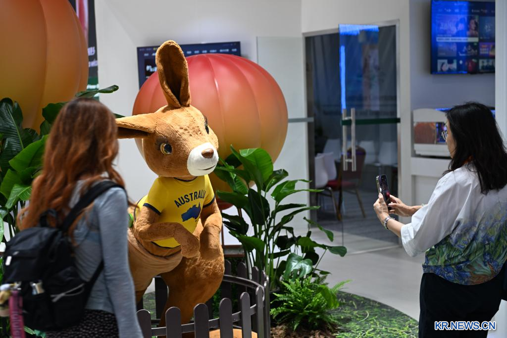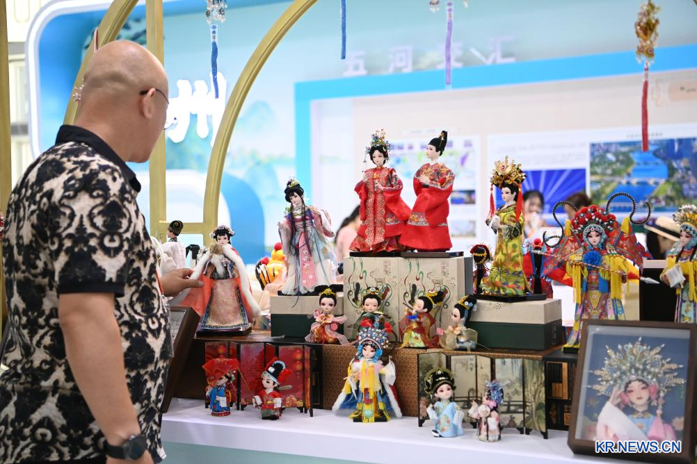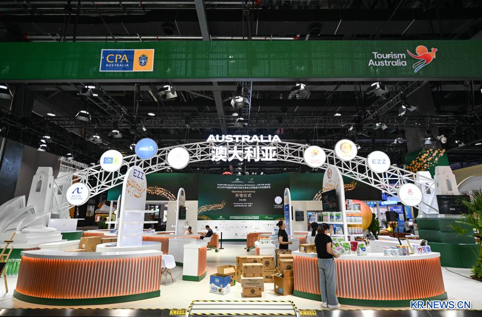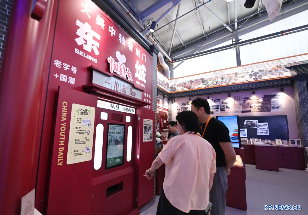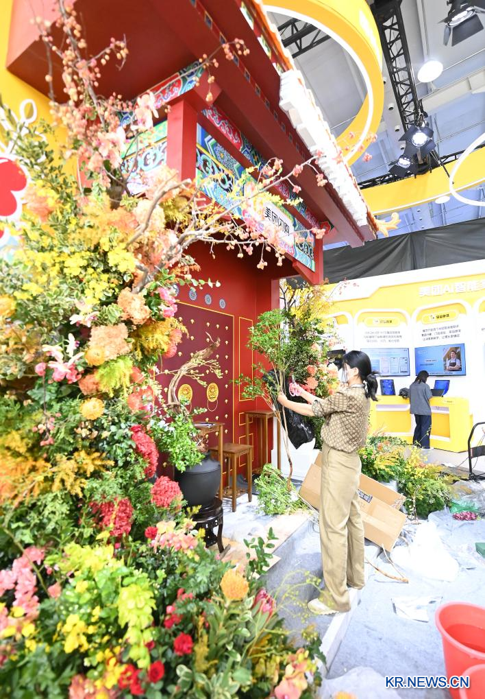 9일 '2025 중국국제서비스무역교역회(CIFTIS)' 문화관광 서비스 특별전 직원들이 전시 준비 중이다.