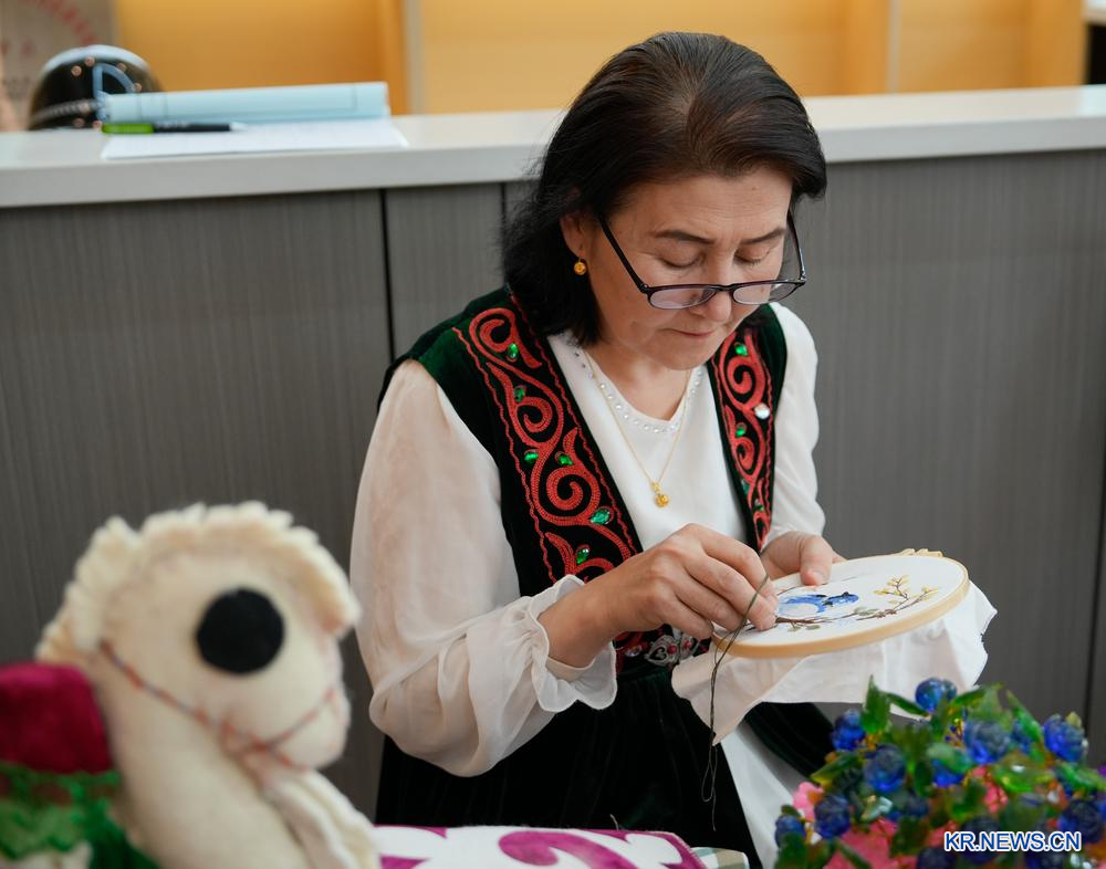 [신화망 타청 9월15일] 신장(新疆)위구르자치구 타청(塔城)지구 어민(額敏)현 기억관(館)은 현지 신시대 문명 실천 기지이자 어민의 다민족 문화와 도시 발전의 변천사를 보여주는 창구 중 하나다. 기억관에서는 수공예 장인과 전통문화 애호가들이 다양한 교류 활동을 펼치며 각 민족 문화의 매력을 선보이고 있다.